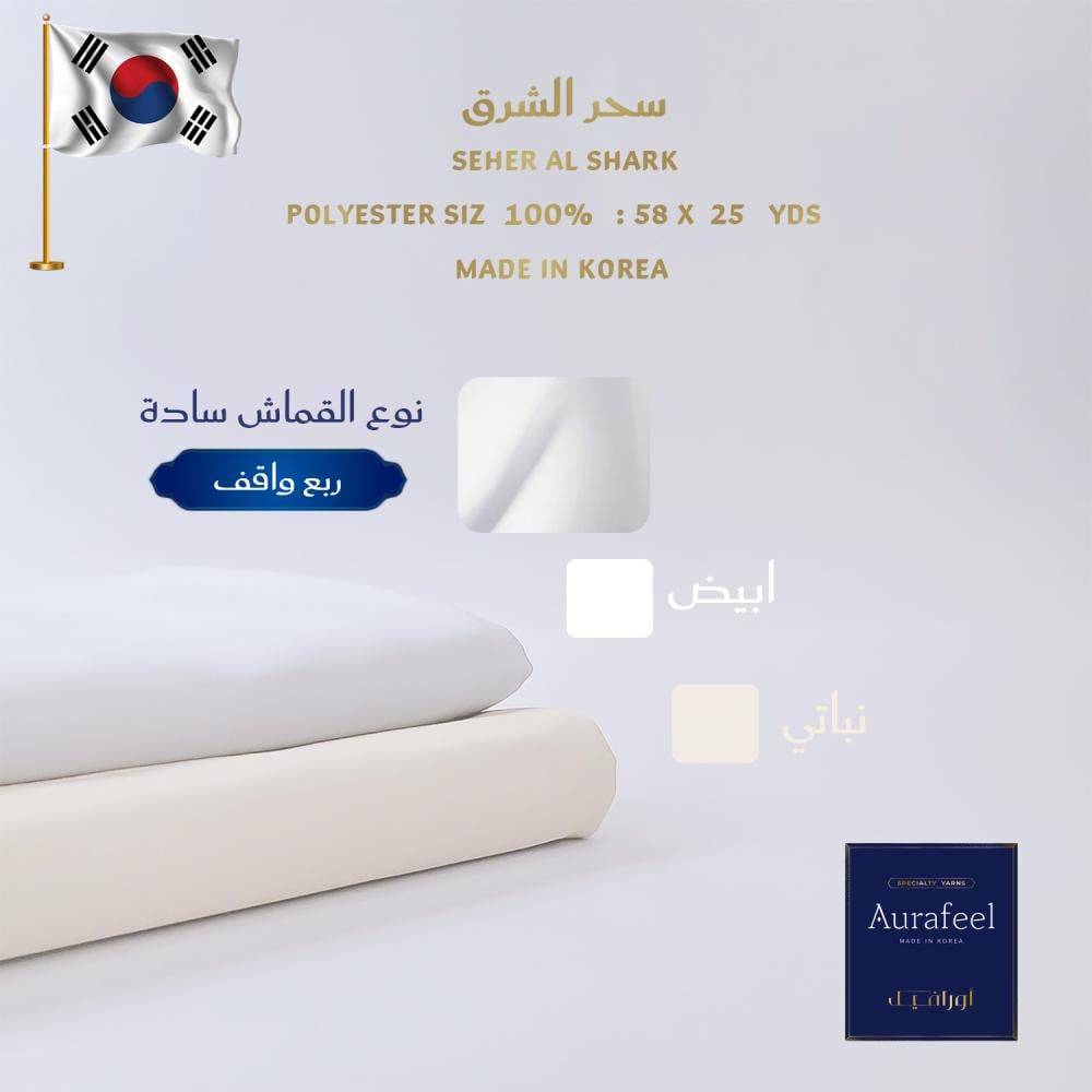 أنعم الأقمشة الرجالية، خفيف الوزن وبارد نسبيًا لكنه غير شفاف.” مناسب للاستخدام اليومي والعمل في الأجواء الحارة، ويمتزج بين الفخامة، الخفة، والجودة. مع اضافة الياف طبيعيه . يتوفر لونين ابيض و نباتي